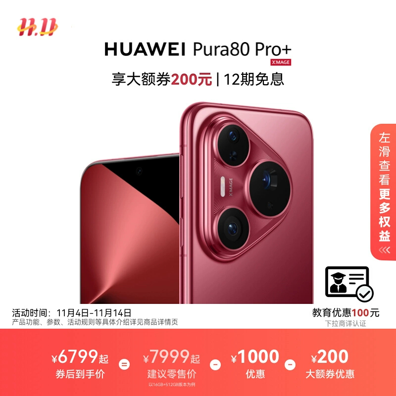 HUAWEI Pura 80 Pro+ Appareil photo principal haute dynamique d’un pouce Carte couleur personnalisée Composition assistée par l’IA Smartphone HarmonyOS Magasin phare officiel de Huawei